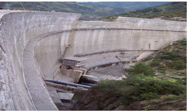 該工程位于勉縣二道河鄉(xiāng)褒河支流沙溝河中段,壩頂寬4.0m、底寬16m、壩高55m、壩頂弧長(zhǎng)220.78m,為變?nèi)碾p曲拱壩。該壩壩體結(jié)構(gòu)復(fù)雜,此雙曲拱壩結(jié)構(gòu)為陜西第一座,技術(shù)含量較高。該工程于1998年9月1日開工,2003年1月31日竣工。